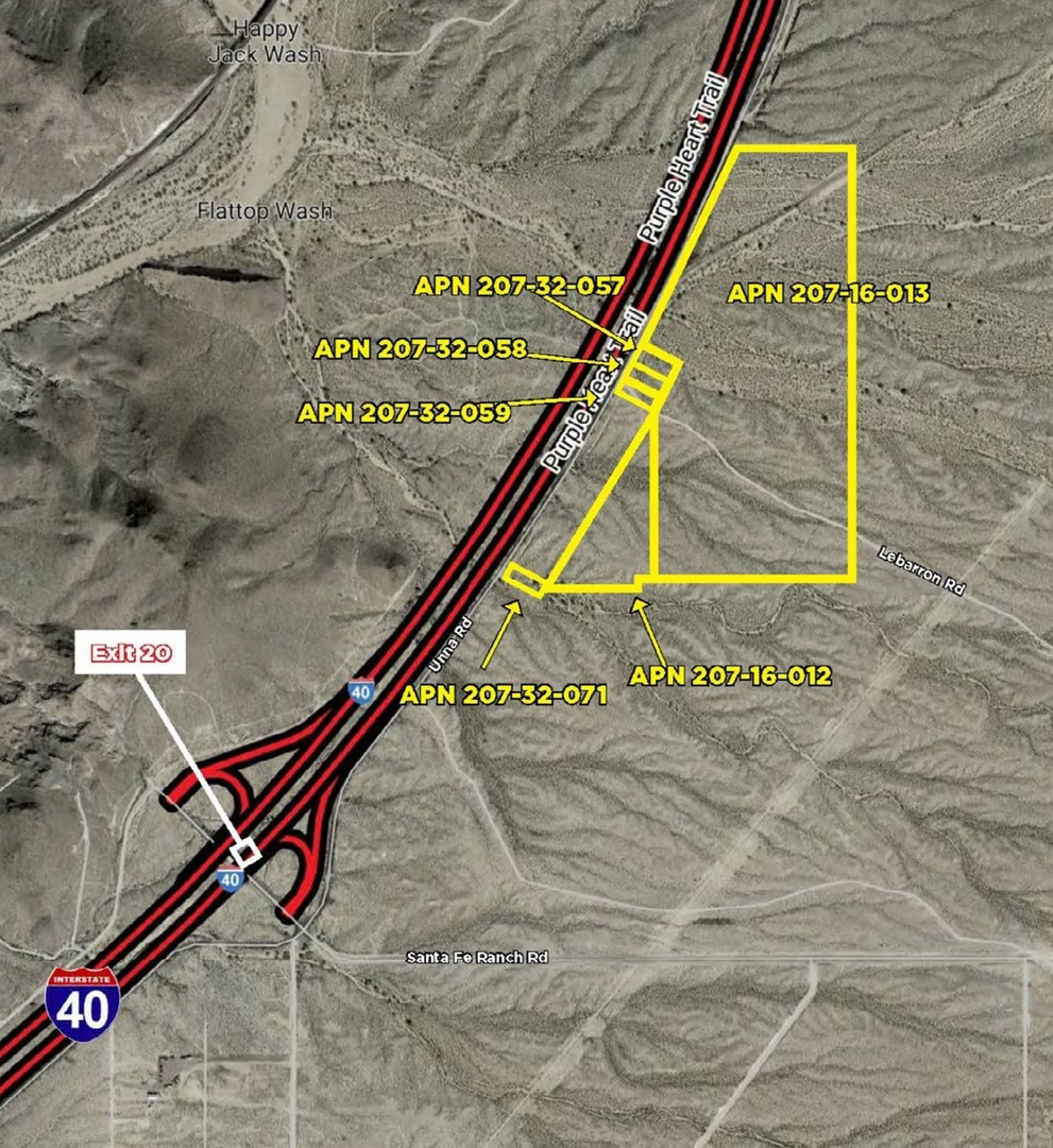 6 Separate contiguous parcels of Vac, UI, and LI Land along the east side of I-40, near Exit 20.
