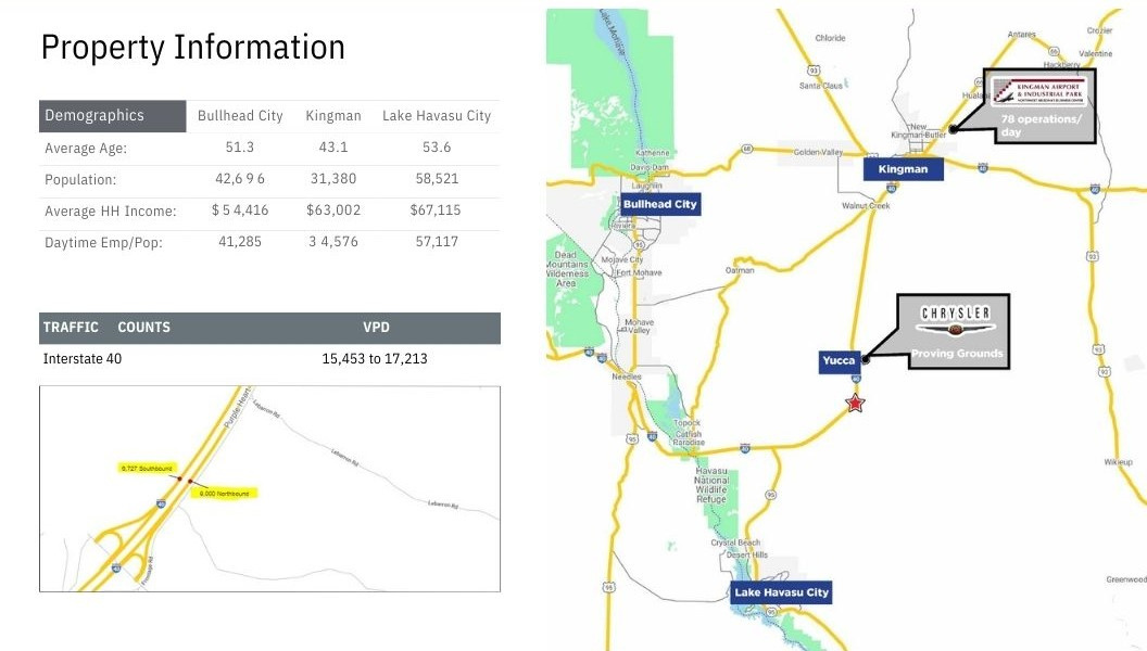 Escape to the tranquility of Yucca, Arizona, with this expansive 91-acre combined parcels featuring prime Interstate 40 frontage. The canvas is yours to create a dream off-grid lifestyle, develop mini ranches, establish a mobile home park, craft a tiny home community, or design an RV vacation destination park or a multitude of other possibilities.